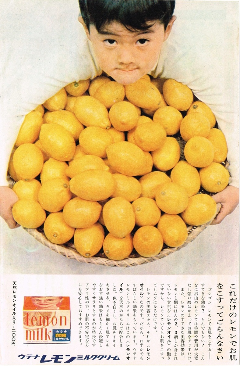 1964年は東京オリンピックの年で、日本の広告表現が色彩を帯び始める時期でもありました。一方で美容に関する情報はまだ十分に整理されておらず、レモンをこすれば肌が白くなるという民間療法と、「レモン配合」をうたう商品が同じ市場に並んでいた時代でもあります。